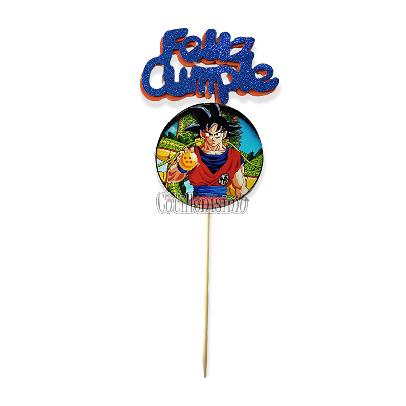 Pinche Feliz Cumpleaños Gibreado Goku Dragon Ball Medidas aproximadas: 29cm total – 9cm x 9cm Personaje – 11cm x 8cm Frase
