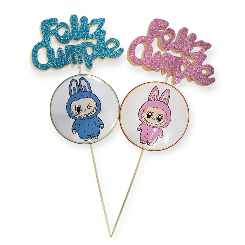 Pinche Feliz Cumpleaños Gibreado LABUBU Rosa y Celeste Medidas aproximadas: 29cm total – 9cm x 9cm Personaje – 11cm x 8cm Frase El color se entrega de forma surtida segun disponibilidad del stock