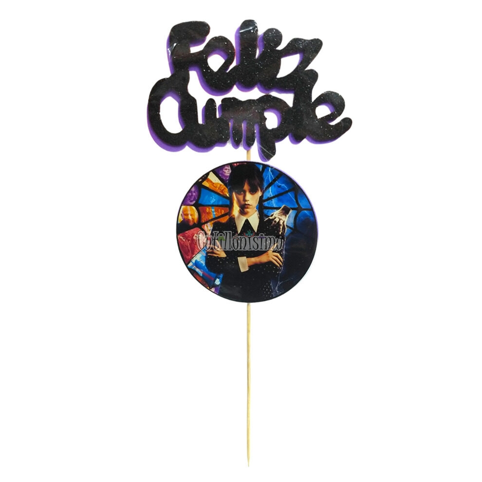 Pinche Feliz Cumpleaños Gibreado Merlina Medidas aproximadas: 29cm total – 9cm x 9cm Personaje – 11cm x 8cm Frase