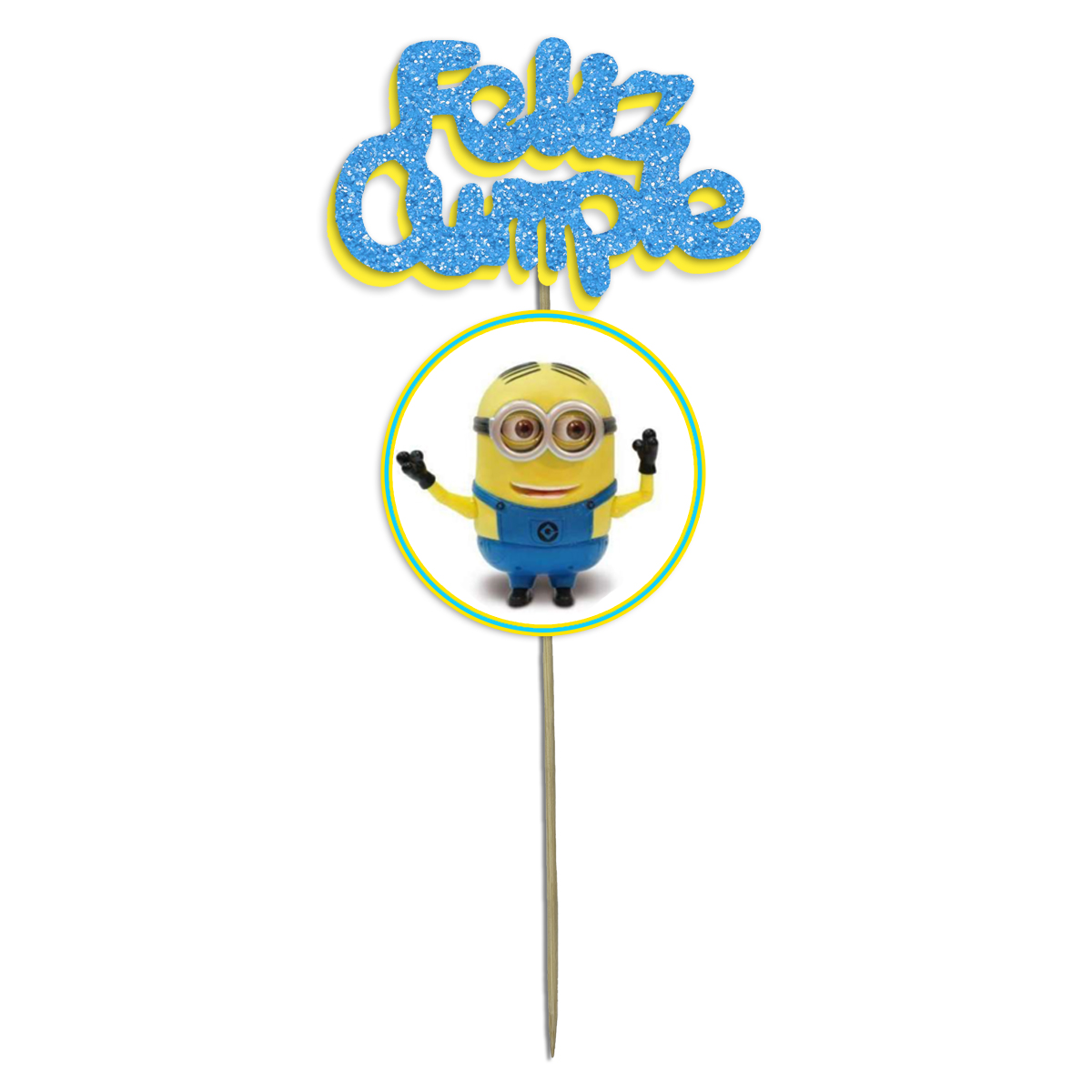 Pinche Feliz Cumpleaños Gibreado Minions Mi Villano Favorito Medidas aproximadas: 29cm total – 9cm x 9cm Personaje – 11cm x 8cm