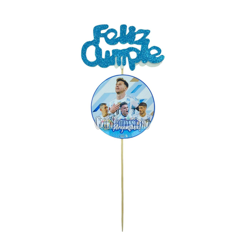 Pinche Feliz Cumpleaños Gibreado Vamos Argentina – Messi – Lautaro – De Paul – Di Maria Medidas aproximadas: 29cm total – 9cm x 9cm Personaje – 11cm x 8cm Frase