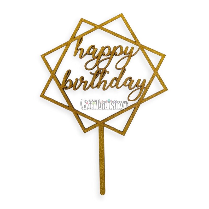 / Pinche Fibrofacil Frase Happy Birthday Dorado x1 Unidad