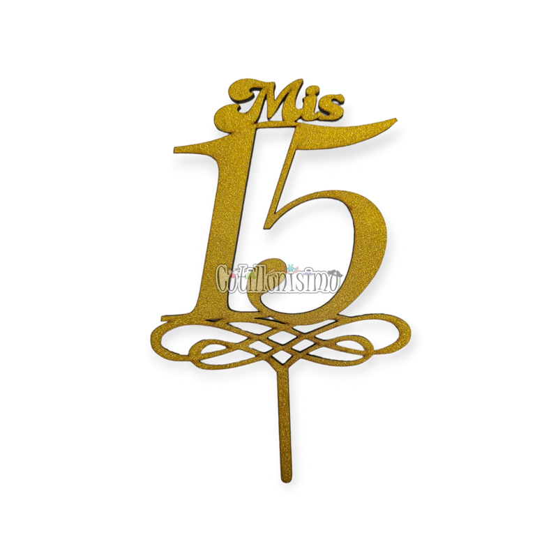 Pinche – Topper Fibrofacil Mis 15 Años Dorado Medidas aproximadas: 19 cm x 13 cm x 0,3 cm Color: Dorado