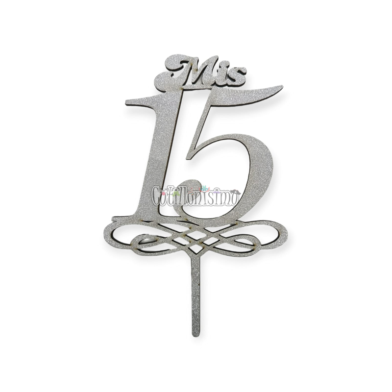 Pinche – Topper Fibrofacil Mis 15 Años Plateado Medidas aproximadas: 19 cm x 13 cm x 0,3 cm Color: Plateado