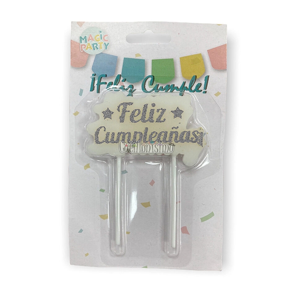 / Pinche Vela Feliz Cumpleaños Frase Gibreada Cursiva Plateado