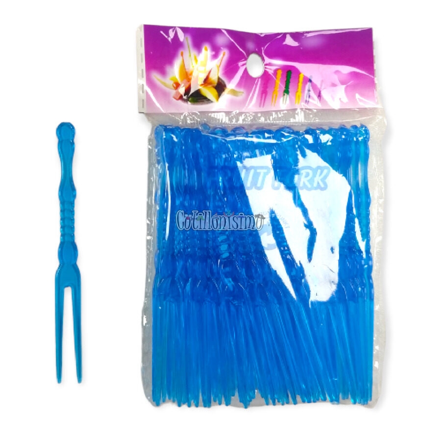 Pinches Plástico dos Puntas para picada / copetín color Azul x 50 unidades