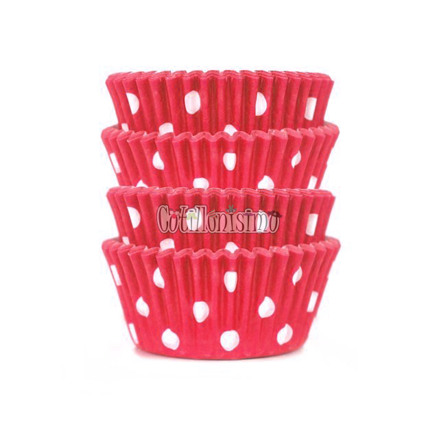 / Pirotines Cupcakes Nº10 – Rojo Lunar Blanco x25 Unidades