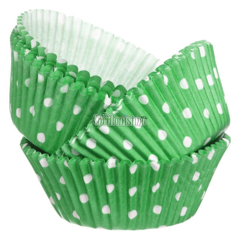 Pirotines Cupcakes Nº10 – Verde Lunares Blanco x25U