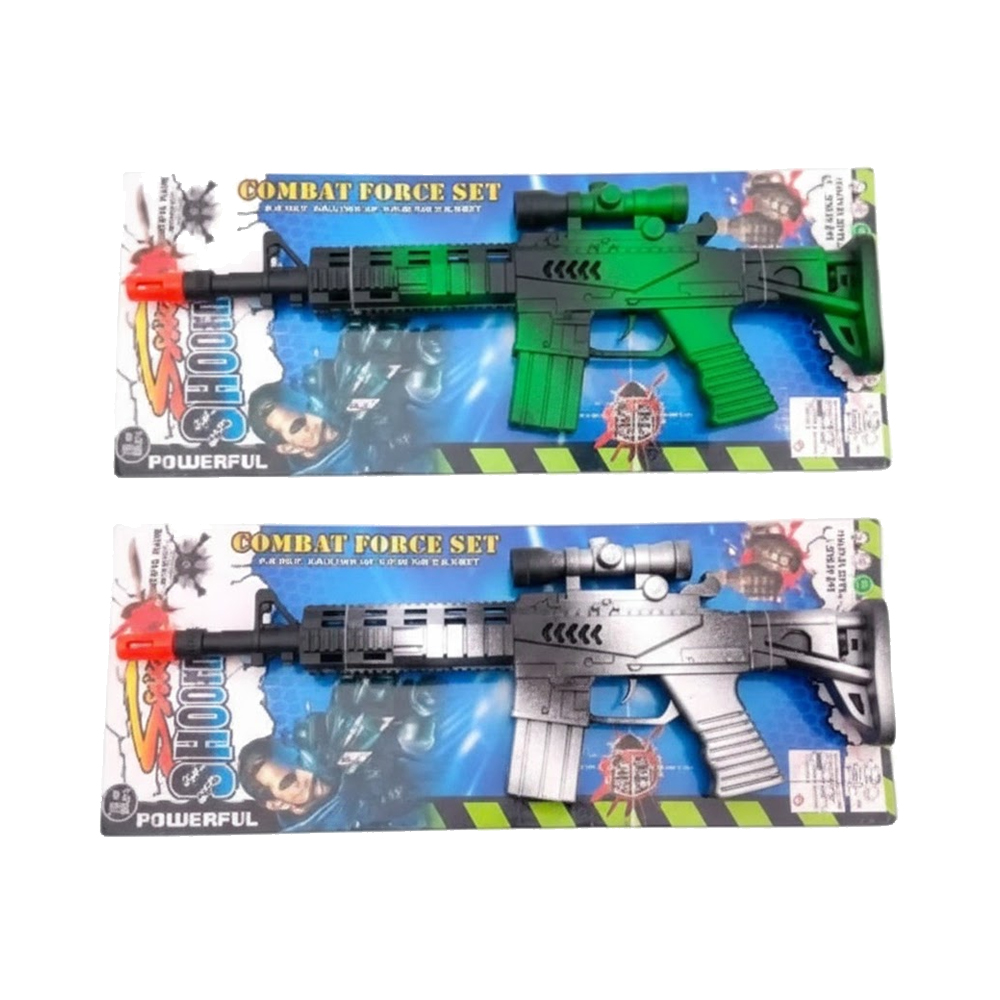 Pistola Ametralladora de Juguete 40 cm Combat Force SET – Soldado – Militar Contiene: 1 Pistola Ametralladora 40cm Colores Surtidos: Plateado – Verde (Camuflado – Camuflaje)