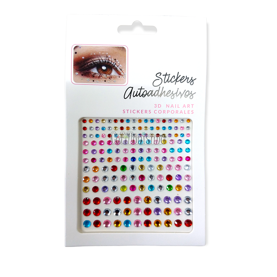 Plancha de Piedritas / Strass / Brillos Redondos colores Surtidos (Multicolor) Tamaño Chico Autoadhesivo El color, formas y cantidad de las piedras pueden variar El modelo se entrega según disponibilidad.