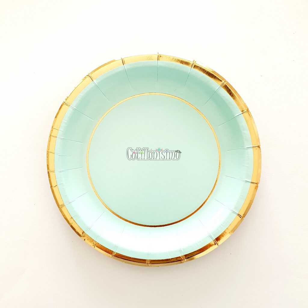 / Plato Circular Polipapel Verde Pastel Guarda Dorada x10 Unidades