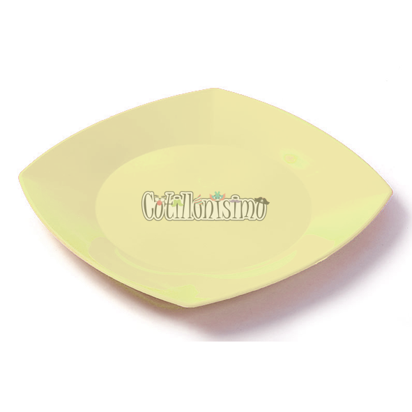 Plato Cuadrado Plastico para Postre 17cm AMARILLO PASTEL x10 U cantidad