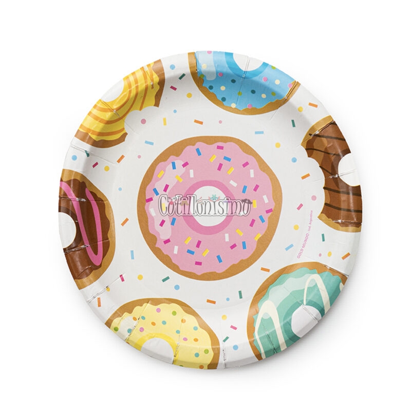Plato Donas X8 Unidades Tamaño aproximado: 18 Cm Material: Cartón Modelo: Donas