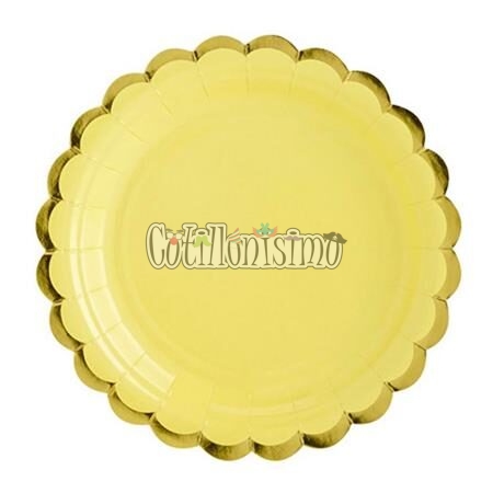 / Plato Polipapel Amarillo Pastel Borde Dorado X10 U
