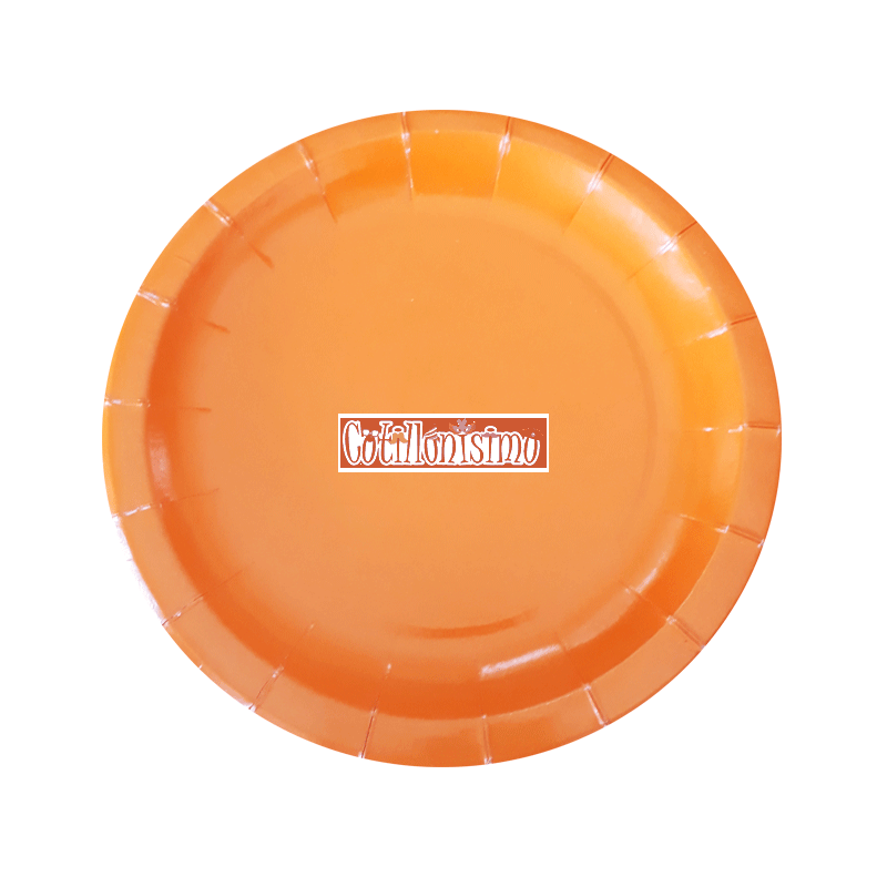 / Plato Polipapel Liso Naranja X8 Unidades