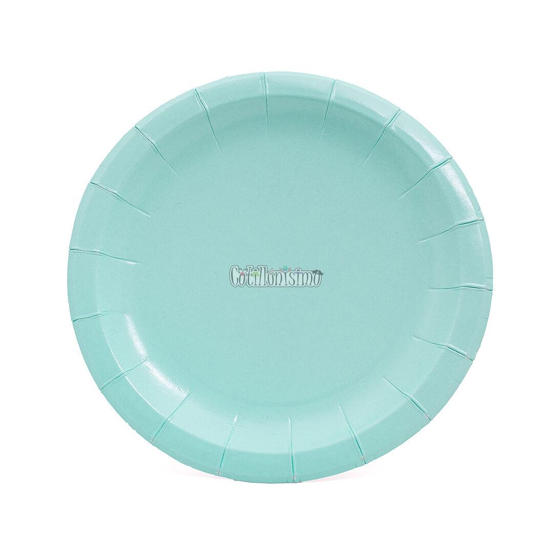 Plato Polipapel Liso Verde Agua X8 Unidades