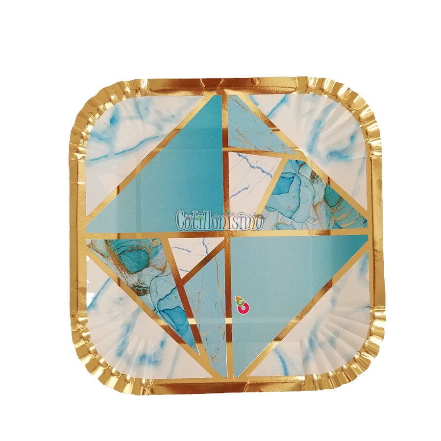 / Plato Polipapel Marmolado Vitraux Celeste x8U