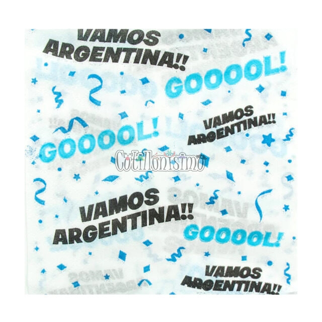 Servilletas Papel Vamos Argentina X20 Unidades Colores: Blanco con estampas «Vamos Argentina» y «Gol / Goooool!» en celeste y negro