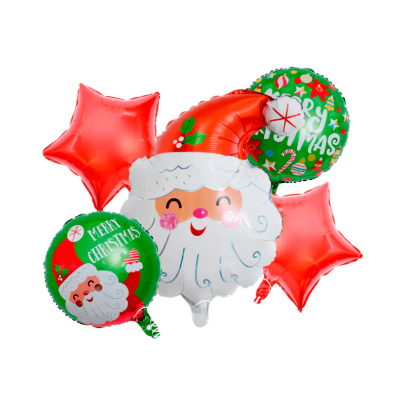 Set 5 Globos Metalizados Merry Christmas Papa Noel