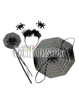 Set de Arañita 3 Piezas Color Negro Contiene: Una Vincha, Una Varita y Unas Alas Medidas aproximadas: Alas 27cm Varita: 38cm