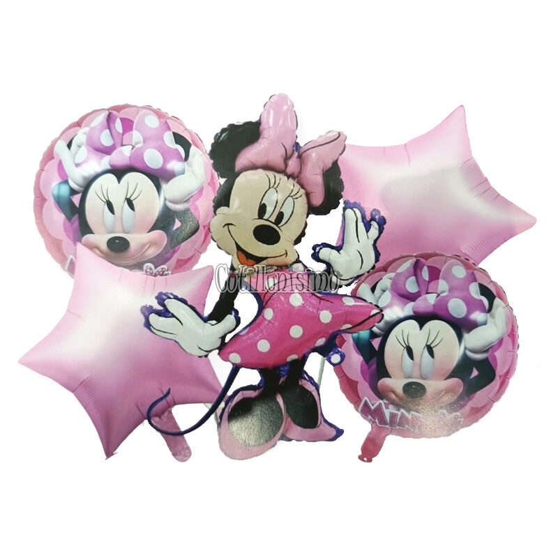 Set de Globos Metalizados de Minnie Mouse 5 Piezas Contiene: 2 globos estrella – 2 globos redondos metalizados – 1 globo de Minnie Mouse