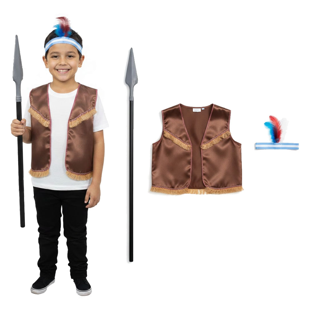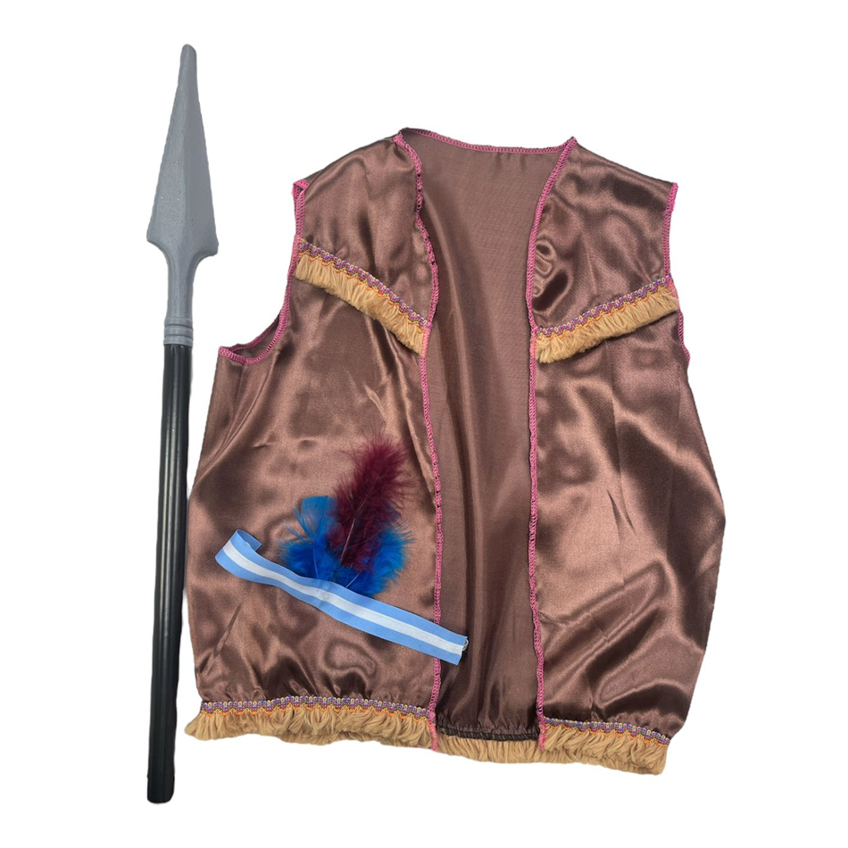 Set Piculli Disfraz de Indio Marron – Talle Unico Incluye: Pechera – Lanza y Vincha con Pluma