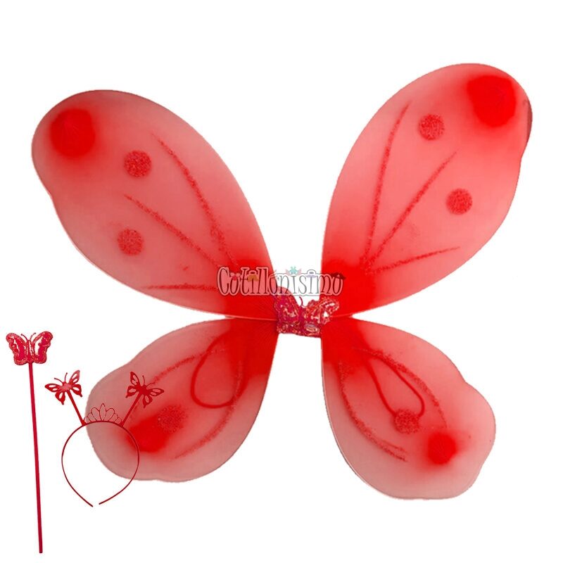 Set de Mariposa Color Rojo MyMParty Contiene: Una Vincha, Una Varita y Unas Alas Medidas aproximadas: Alas: 45cm x 45cm Varita con Mariposa: 31cm