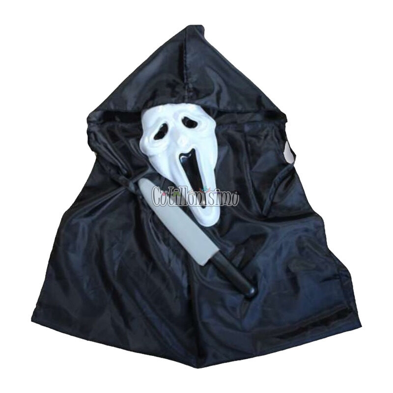 Set Piculli de Scream – Ghostface – Fantasma – Talle Unico Incluye: Mascara, Machete, Tunica con Capa Negra