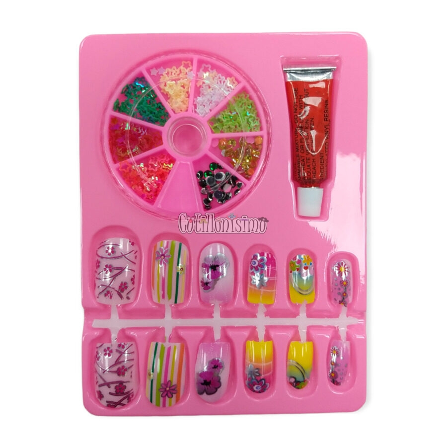 Set Decoración para Uñas Incluye: Uñas Postizas, Pegamento y Brillos para Decorar.