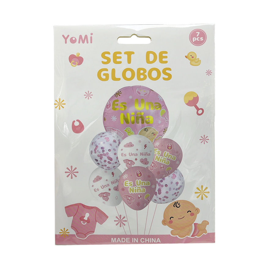 Set Globo Baby Es Una Niña Rosa Con Confetti 7 Globos
