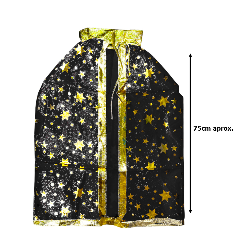 Set Halloween Sombrero Bruja Mago Brujo Hechizero y Capa con Estampas Doradas Estrellas Color Negra