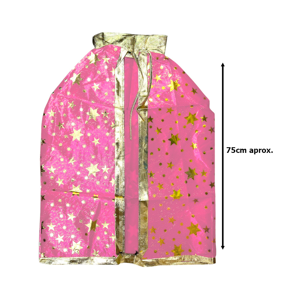 Set Halloween Sombrero Bruja Mago Brujo Hechizero y Capa con Estampas Doradas Estrellas Color Rosa