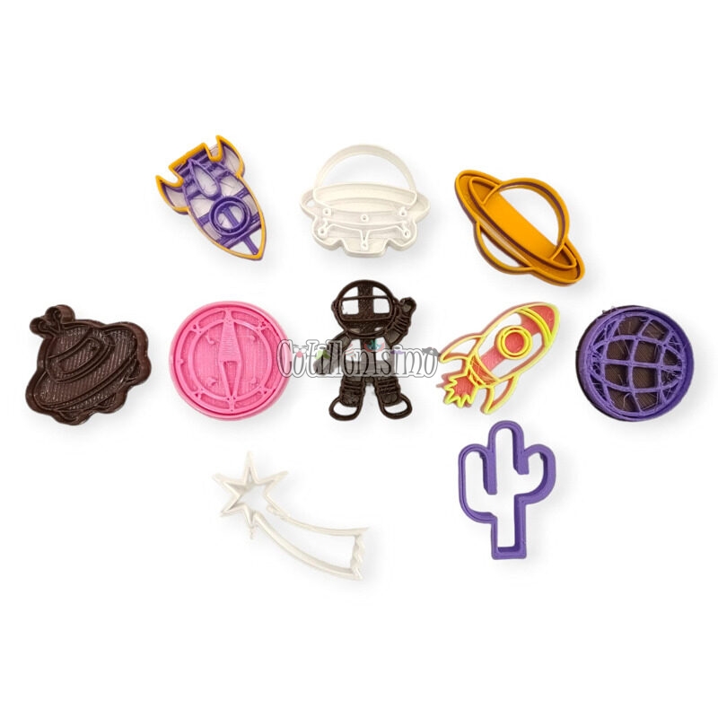 Set Mini Cortantes Espacial x10 Unidades Material: Plastico Medidas Aproximadas: 4cm / 6 cm x 4 cm / 2 cm El color puede variar según stock.