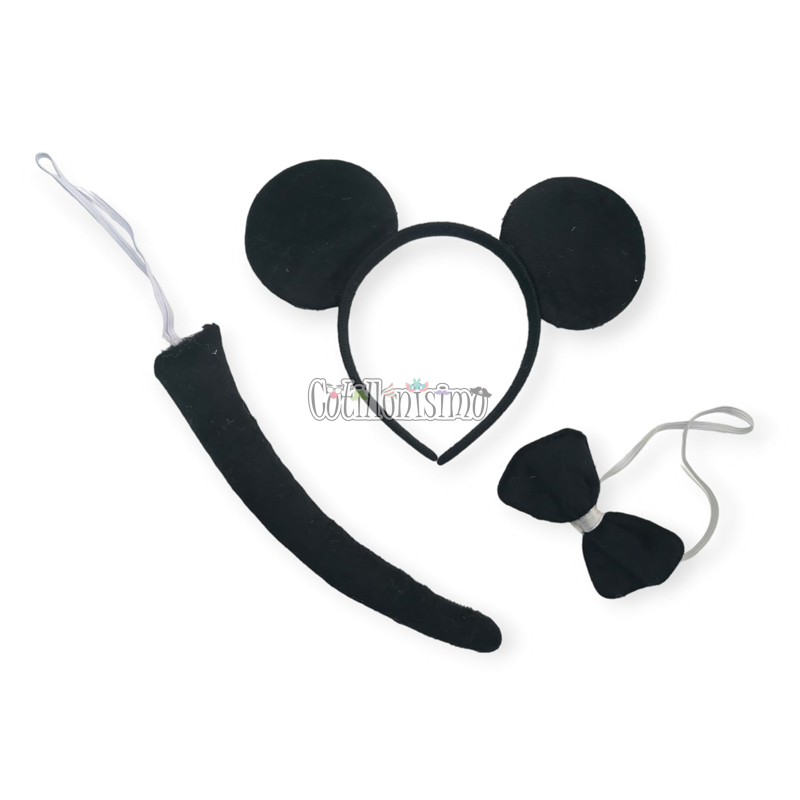 Set Peluche Rata – Ratita- Negro y Blanco Material: Tela Talle Unico. Incluye: Vincha – Moño – Cola Color: Estampado Liso