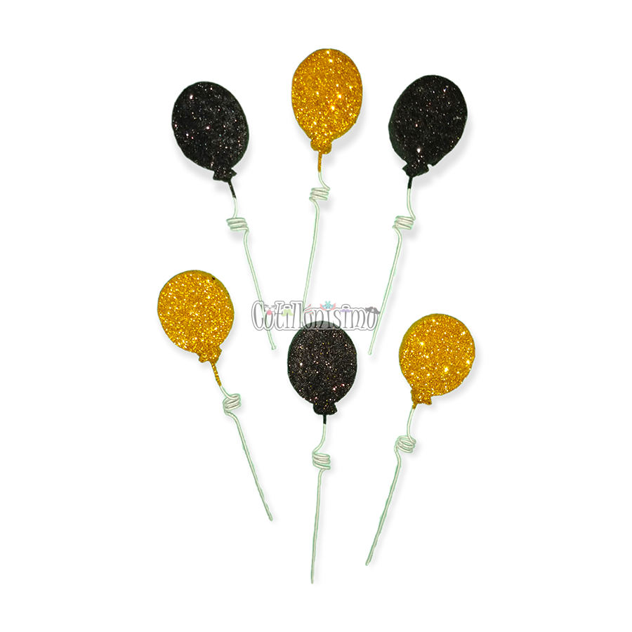 Set Pinches Resorte Globo Negro y Dorado x6U cantidad