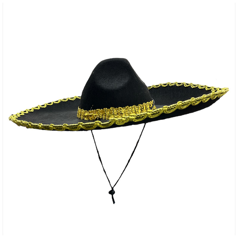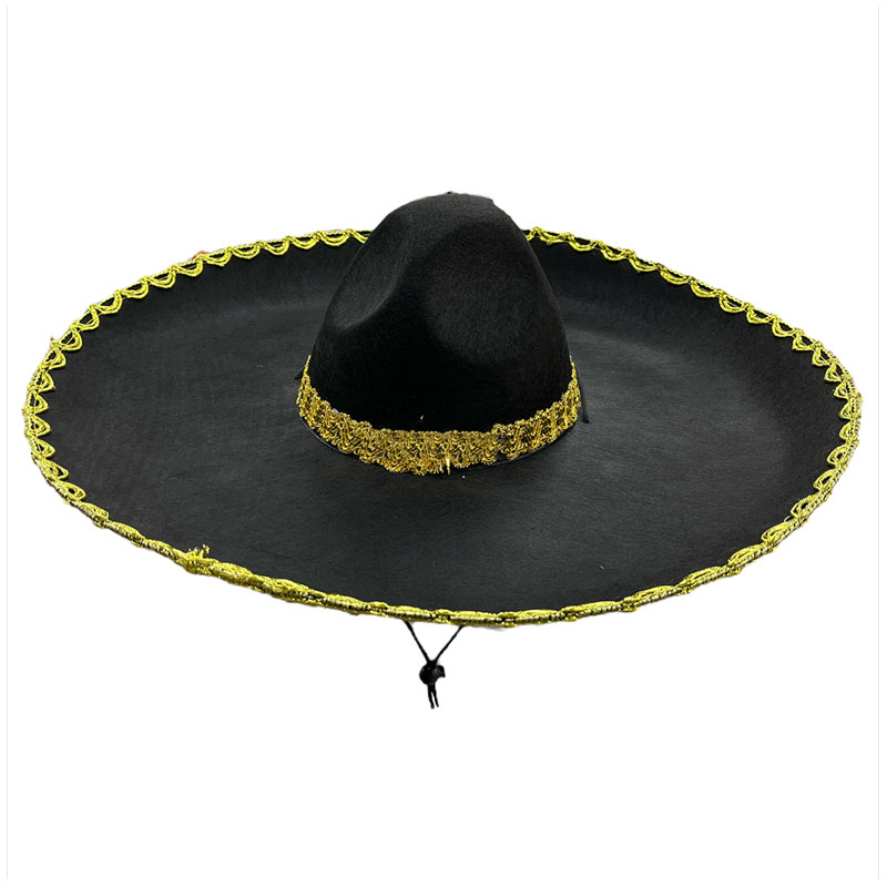 Sombrero Gorro Mariachi Mexico Negro con Dorado 55cm