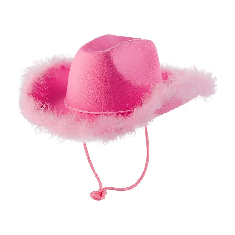 Gorro Cowboy Cowgirl Vaquero Rosa con Plumas