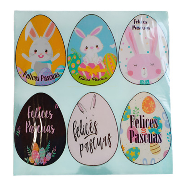 Stickers Autoadhesivos Forma Huevo de Pascua conejos x6u