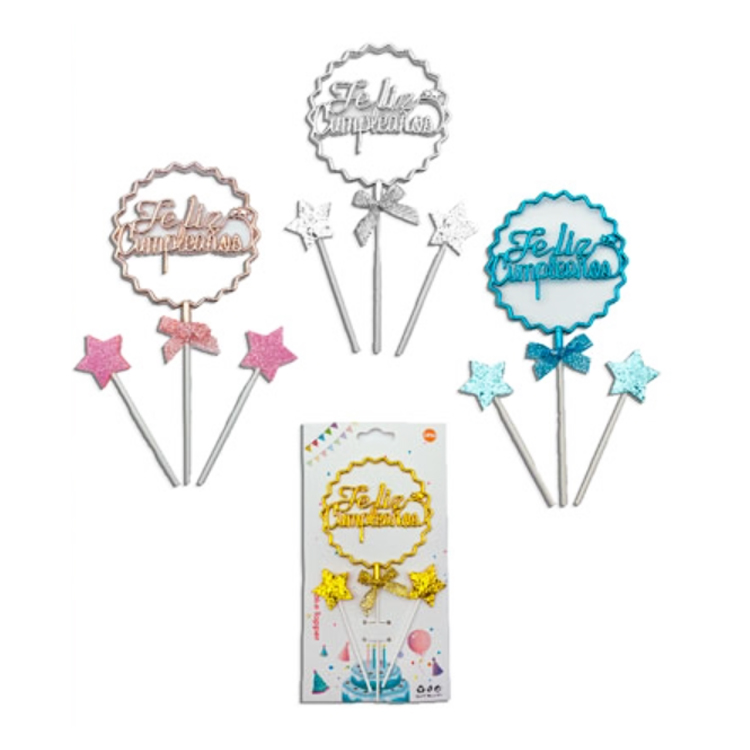 Cake Topper para Torta Feliz Cumpleaños Cursiva 3D Rosa Gold – Celeste – Plateado – Dorado