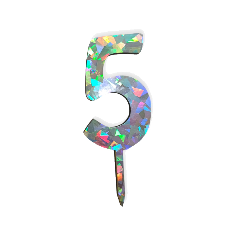 Topper Pinche para Torta Numero Plata Holográfico Fibrofacil 9cm N°5
