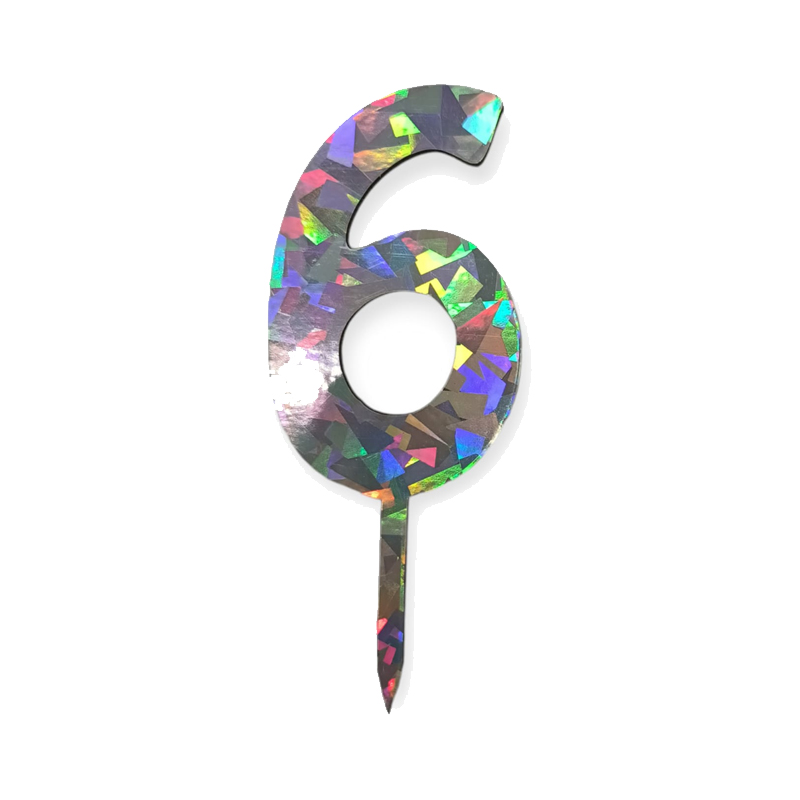 Topper Pinche para Torta Numero Plata Holográfico Fibrofacil 9cm N°6