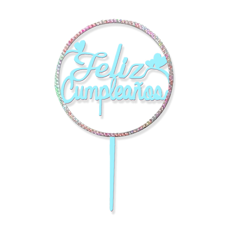 Topper para Torta Celeste con Strass Feliz Cumpleaños x1 cantidad
