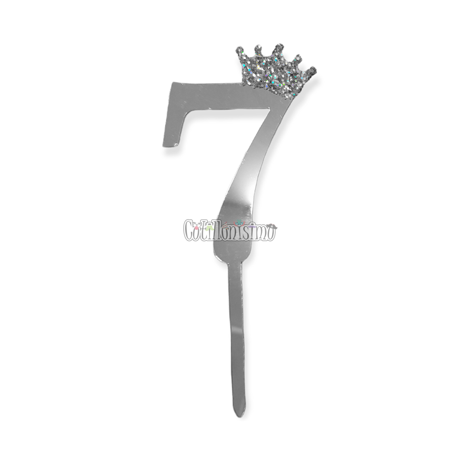 Topper para Torta Plateado Nº7 Con Corona 11cm cantidad