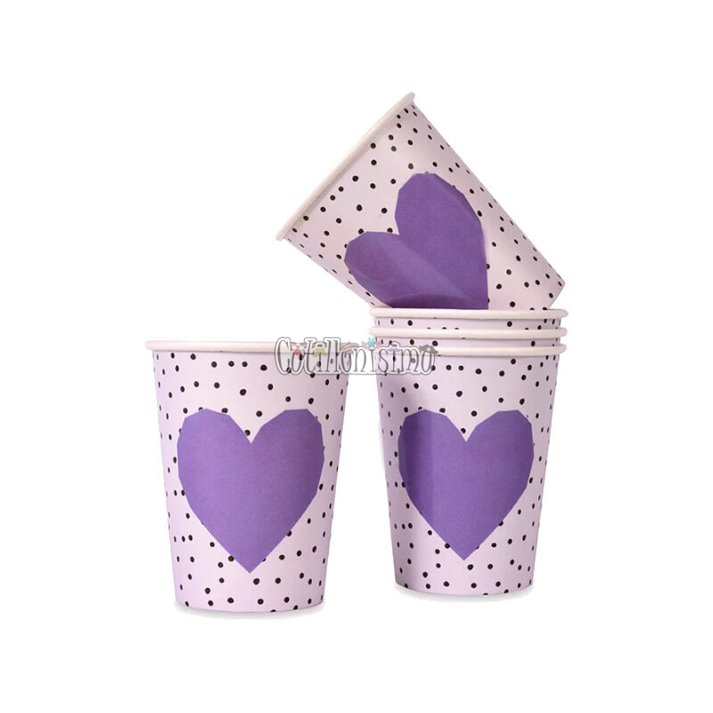 Vaso Polipapel Corazon Violeta con Lunares 240cc x8u