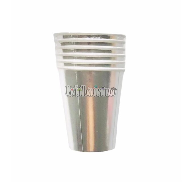 Vaso Polipapel Metalizado Plateado X8 Unidades