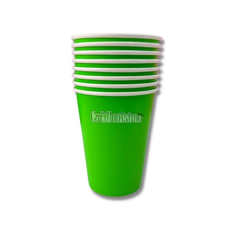 Vaso Polipapel Verde Liso FLUO X8u Capacidad: 240 cc / 8 Oz C.O Altura: 9 cm