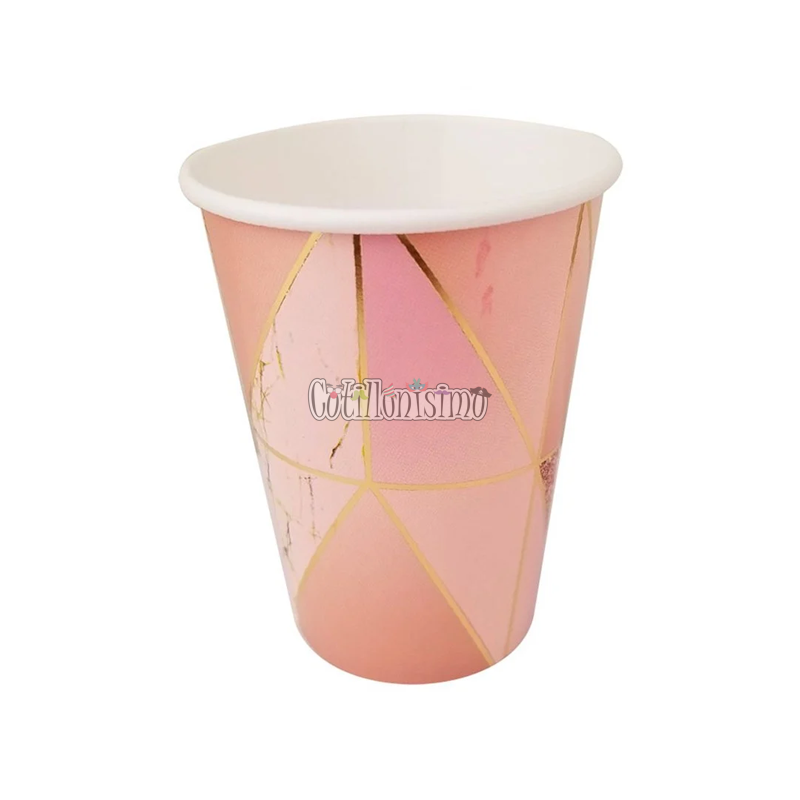 Vaso Polipapel Vitraux – Vitral – Marmolado Dorado Rosa 240cc x8u