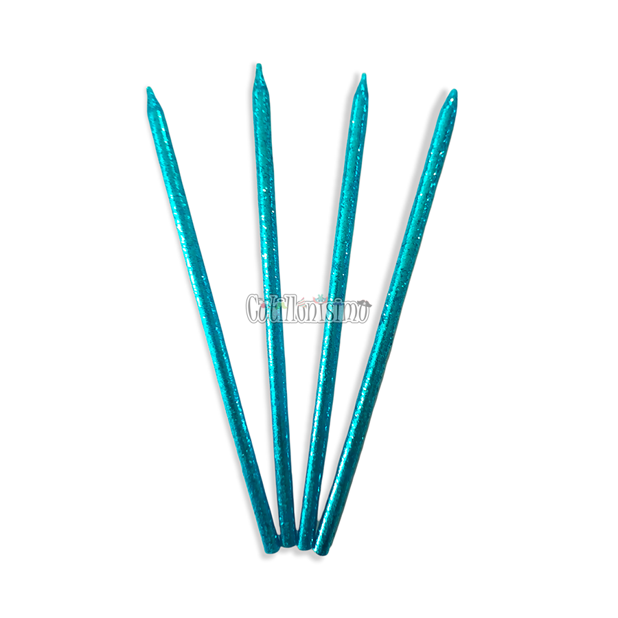 Vela Finita Gibre Larga Celeste x12 unidades. Tamaño de la vela: 17cm aproximadamente.