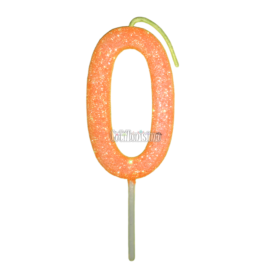 / Vela Gibreada Numero 0 Color Naranja 11cm