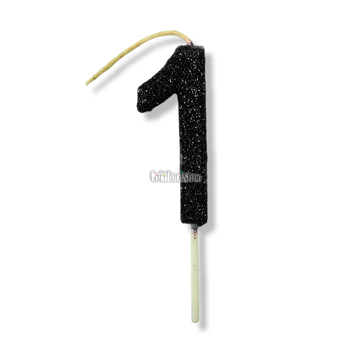 Vela Gibreada Numero 1 Color Negro 11cm Medida: 11cm